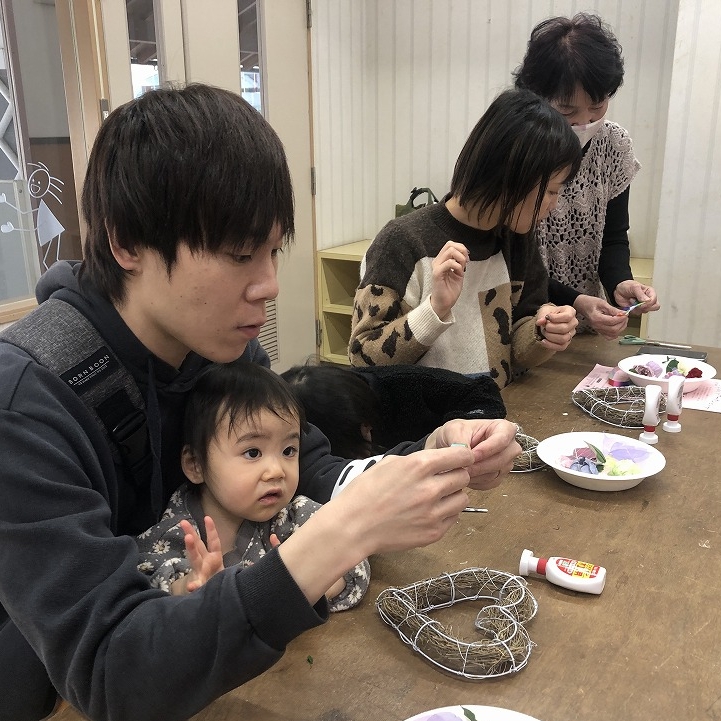 子ども・親子向け お花を使ってリースづくり(1月31日)を開催しました