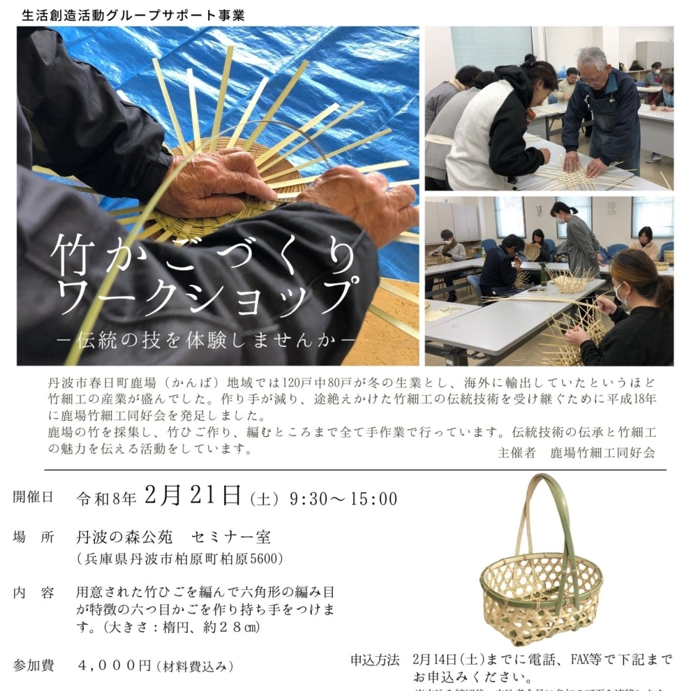 「竹かごづくりワークショップ」(2月21日)の参加者を募集しています