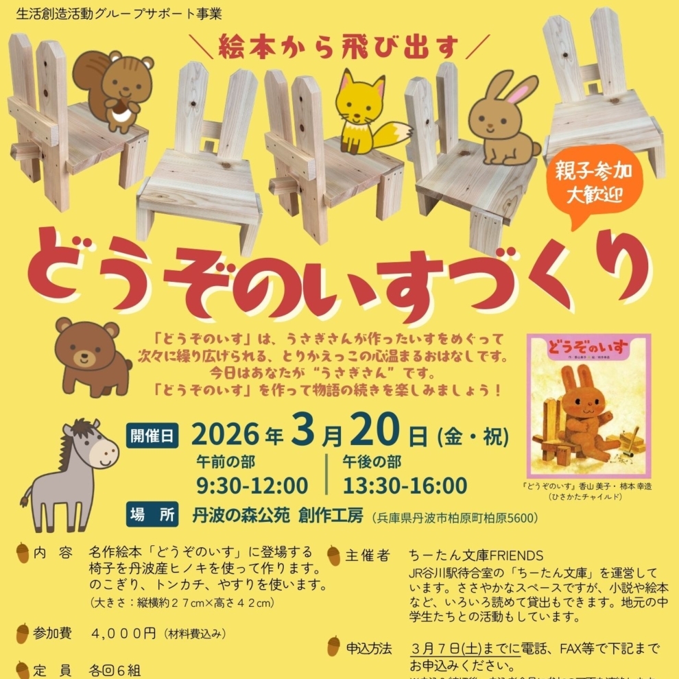 「どうぞのいすづくり」(3月20日)の参加者を募集しています